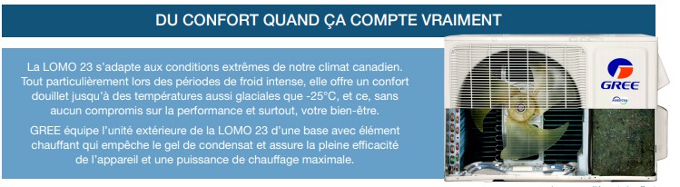 The Gree wall-mounted air conditioner is designed to face the extreme conditions of our Canadian climate. Especially during periods of intense cold, it offers cozy comfort up to temperatures as cold as -30 ° C