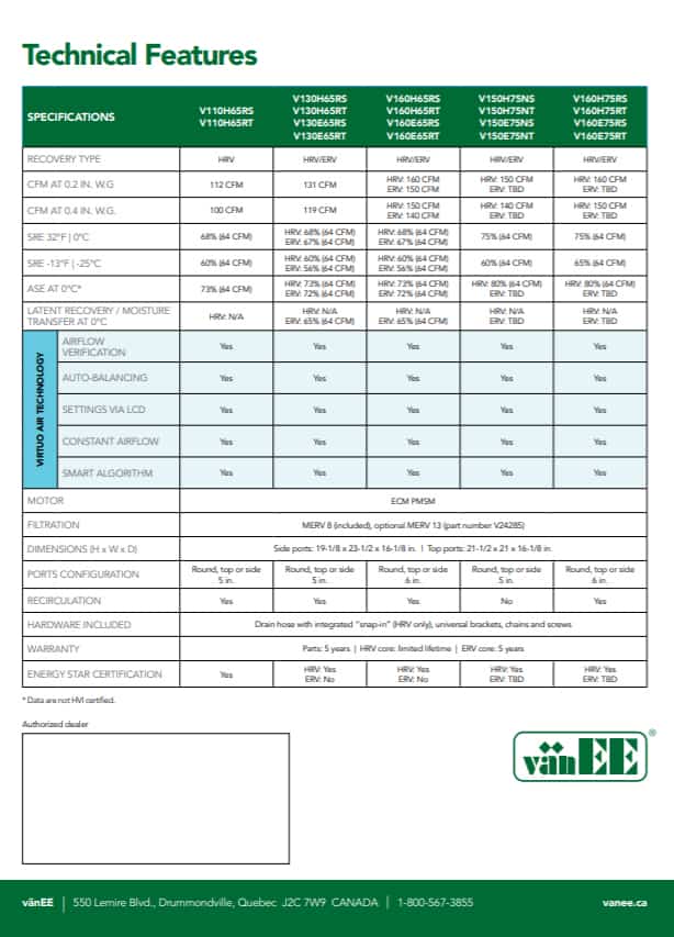 VanEE Virtuo HRV 130 CFM air exchanger – A quality air exchanger at an affordable price